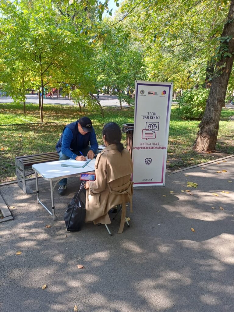 Тамыз айында Алматы қаласы Ішкі саясат басқармасының қолдауымен “Заң кеңесі” жобасы аясында қаладағы 8 аудан бойынша парктерде консультация беру мақсатында жылжымалы мобильдік қызмет ұйымдастырылды.